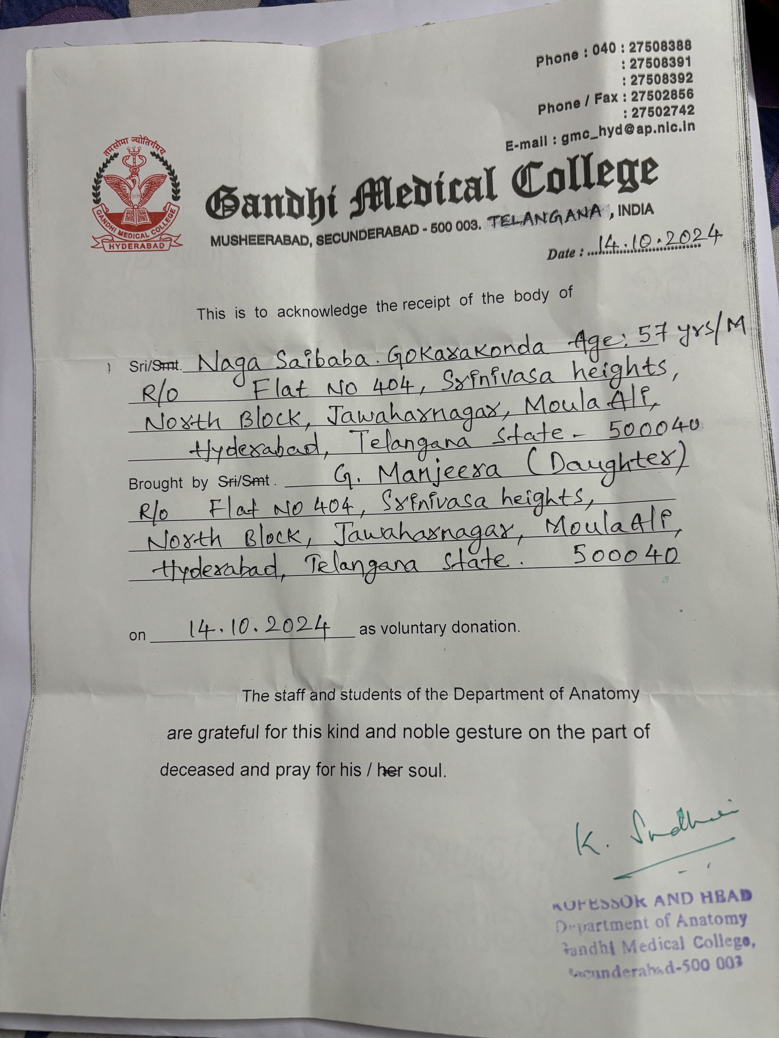 Dr G.N. Saibaba’s body was donated to